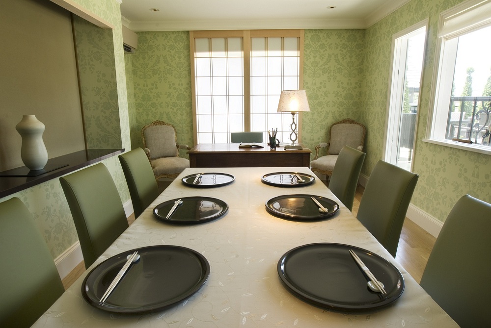 エレガントな雰囲気に包まれて、プライベートなひとときを過ごすことのできる個室を4部屋ご用意しております。調理長の書斎として使用されている一室ではイシスの料理を支える美意識を伺い知ることができるかもしれません。6〜12名様までのご会食にご利用いただけます。