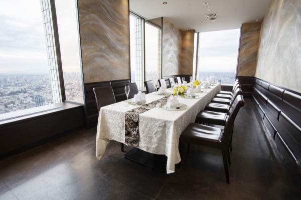 富士山や新宿の高層ビル群を望む59階からの絶景、地上220mの天空。その魅惑の場所は1秒ごとに表情をかえる。地上には存在しない、まさに美食の庭